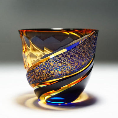 [SAKE GLASS] COLD SAKE GLASS HOU EI (BLUE & ORANGE) | KIRIKO[SAKE GLASS] COLD SAKE GLASS HOU EI (BLUE & ORANGE) | KIRIKO