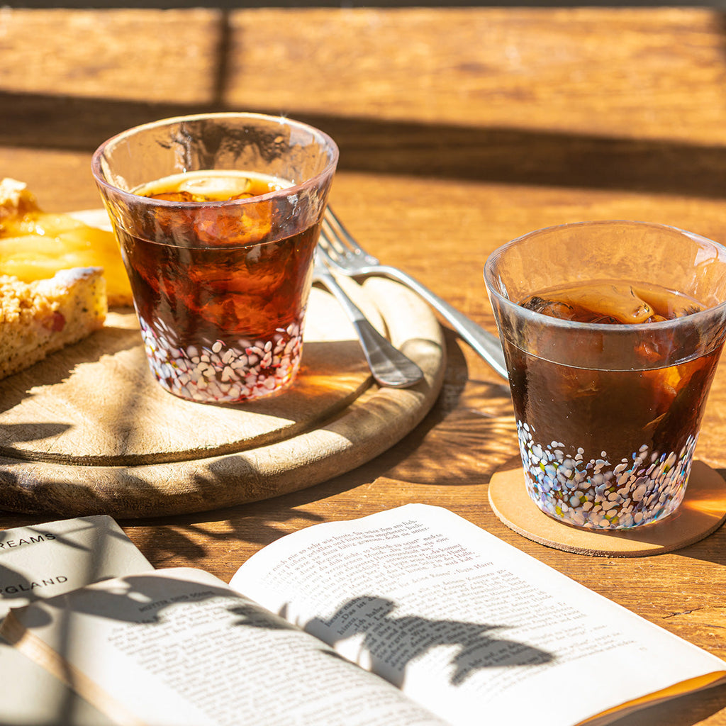 Tsugaru glassware is a hand-blown traditional craft reflecting the climate of Aomori. The "Colors of Japan" series depicts shifting seasonal landscapes by layering colored glass, where the shimmer, depth, and light-infused color gradients lend a sense of depth to the clear glass.