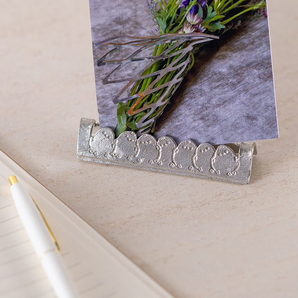 A charming winter scene! These "Shima-enaga" (Long-tailed Tit) cutlery rests feature the birds snuggling together under a cold winter sky.