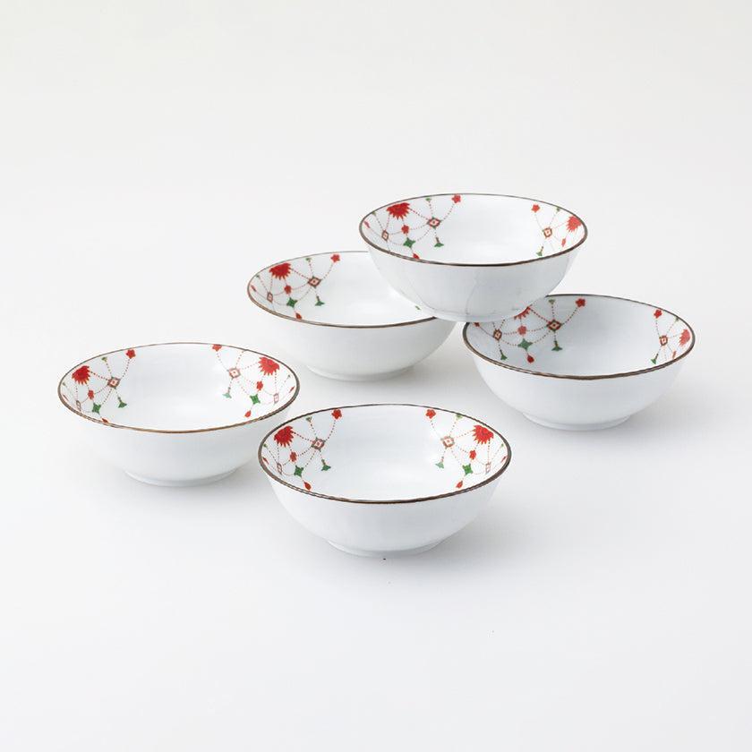 The yoraku pattern decorating the bowls was drawn in the motif of ornaments worn by ancient Indian aristocrats.
