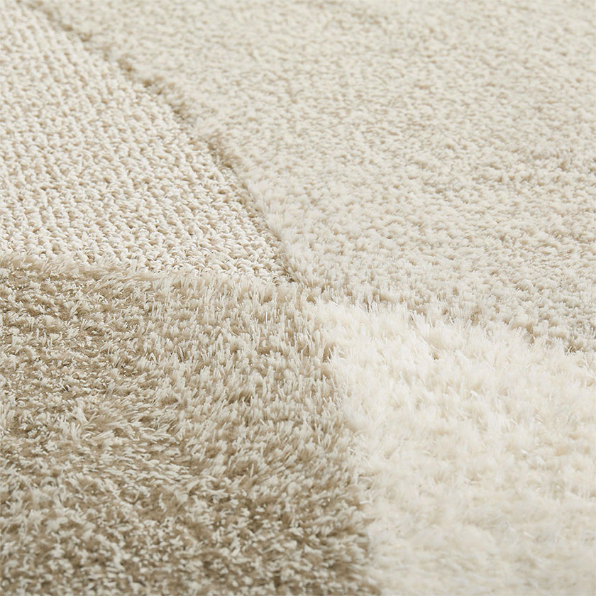 Combining two pile types—fluffy, smooth cut pile and silky loop pile—creates a three-dimensional look and unique texture.