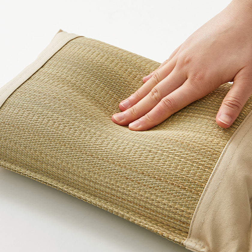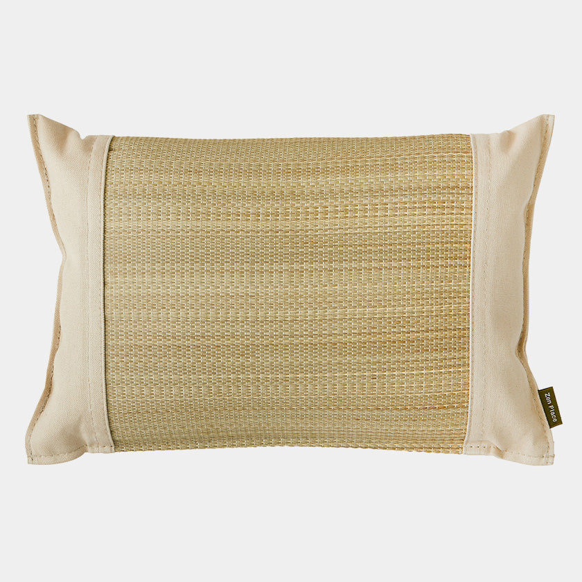 “Kurashiki Canvas,” a material crafted locally around Kurashiki City since the 18th century, further enhances the quality and appeal of this rush grass pillow.