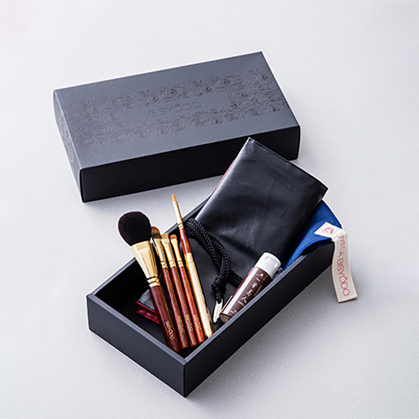 | Note | [ Set Contents ] BISYODO 5-Piece Makeup Brush Set, braided pouch, BISYODO Towel, New Brush Beauty (makeup brush cleanser) 30ml *LIP BRUSH WITH CAP (FLAT) is not eligible for name engraving. |